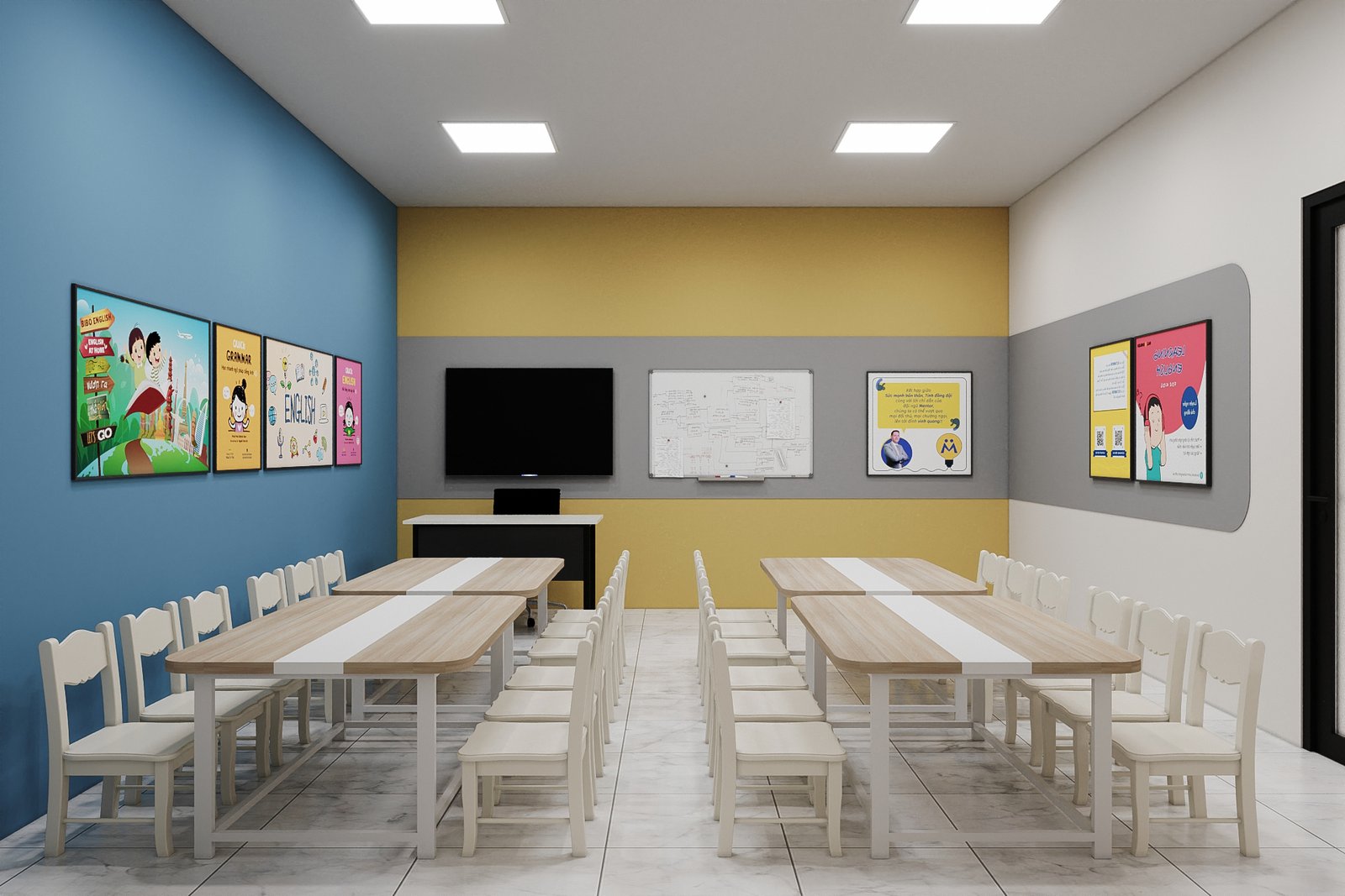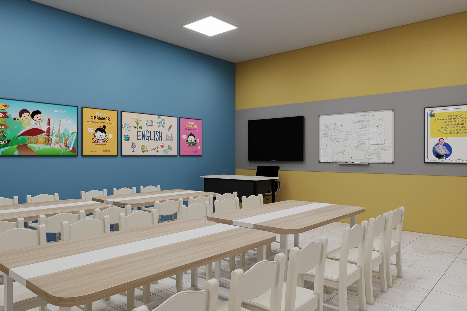 MENTOR KID – HẠ LONG Project: Cambrige Mentor Kids Địa điểm: MonBay, TP Hạ Long Diện tích: 30m2 Thiết kế & Thi công: AT Design